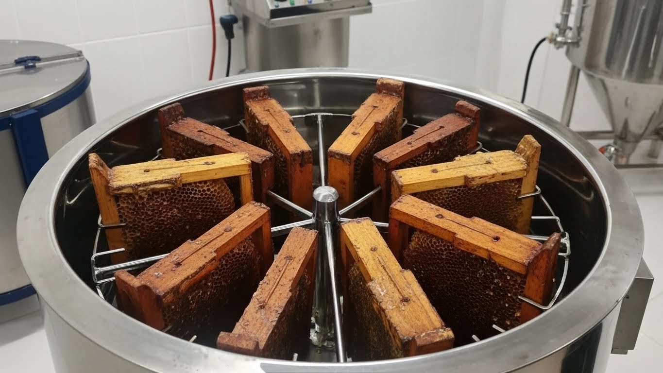 O mel é extraído de forma cuidadosa e higiênica, mantendo suas características naturais, sem aquecimento excessivo.
